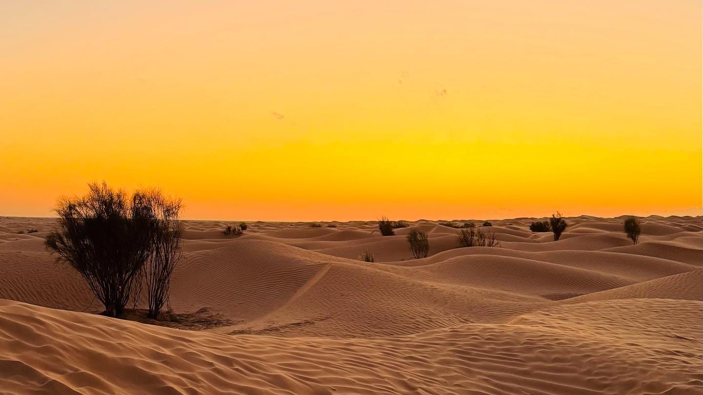 Pranzo a vostro carico. A seguire ci addentreremo nel deserto, dove trascorreremo una magica notte tra le dune del Sahara. La cena (inclusa) sarà preparata in un suggestivo contesto di fuoco, dune e stelle. Pernottamento in un bellissimo punto del Sahara tunisino dopo esserci addentrati tra le dune. Campo previsto : privato con tende beduine.
