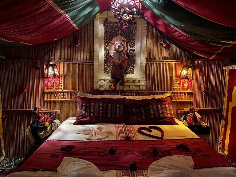 Al mattino, dopo colazione si partirà per una visita della medina di TOZEUR. Al termine proseguiremo in direzione DOUZ dopo aver attraversato il famoso lago salato CHOTT EL DJERID. Arrivo presso TENTE ELBEY. Tempo libero nel pomeriggio. Cena e pernottamento presso TENTE EL BEY LUXURY LODGE. La cena inclusa sarà presso il Restaurant Elbey. Imperdibile ristorante tra le palme che offre piatti della tradizione locale beduina. Immerso in un palmeto di datteri è davvero un oasi di bellezza dove potrete gustare le tipiche pietanze cotte in gargoulette. La serata sarà allietata dal folclore locale.