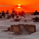 Colazione nel deserto e partenza dal Sahara per rientrare alla nostra base di DOUZ per il relax dopo il deserto. Giornata di relax con tempo libero a disposizione prima dell’imperdibile ora del tramonto a ZAAFRANE dove sarete accompagnati. I colori rosso acceso tra le dune bianche e i palmizi di questo punto sahariano sono incredibili. Cena e pernottamento presso Tente Elbey.